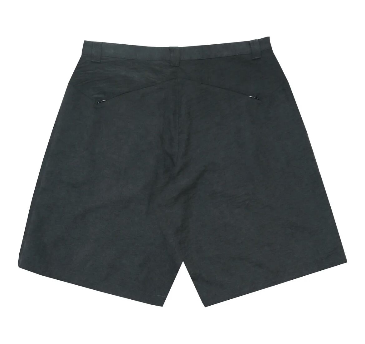 バルーンと名付けられたこのショーツは、2タック仕様のためワタリが広い。ドレープの見え方を意識して選定された生地はピーチスキン。それを裾のドローコードを少し絞ることによりバルーンのようなシルエットのショーツが完成。