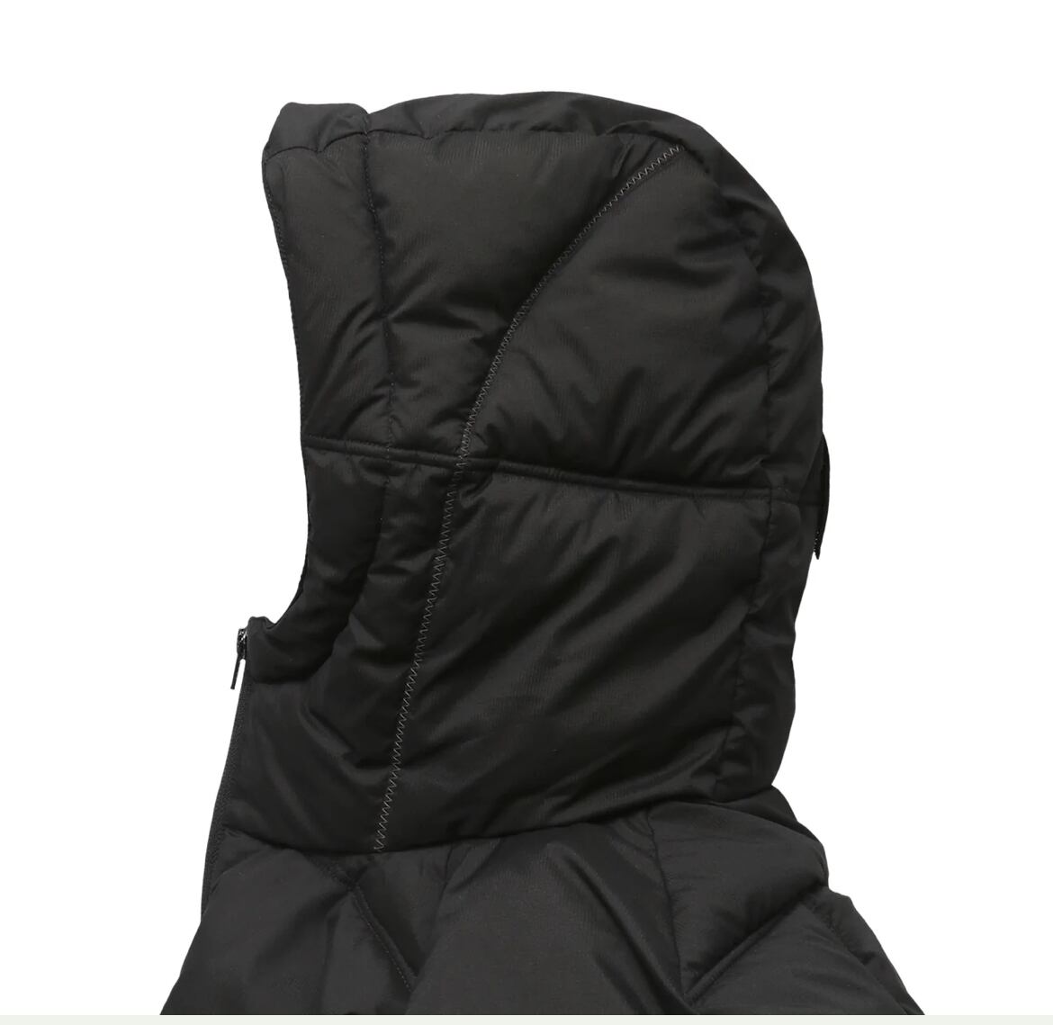 レンガをモチーフにしたステッチとフロントにはシンプルにWHIMSYロゴ刺繍を配置。首元まで包み込むフードが全体を引き締め、横から見ても美しいシルエットを表現。