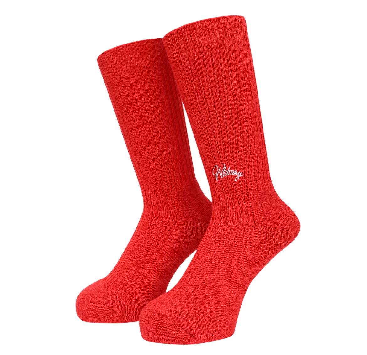 サラリーマンのおじさんや真面目に登校する学生なんかが履いてそうなシンプルなソックスをサンプリングしたソックス。シーズンによりボディカラーやロゴのカラーが変わるWHIMSY定番の1足。