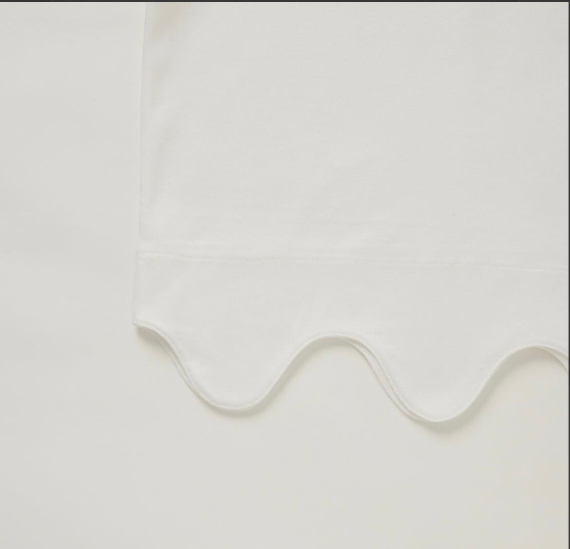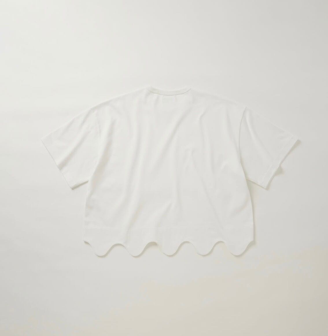 ヘビーウェイトでしっかりとしながらも柔らかな風合い。丈の波打ったデザイン(スカラップ)が特徴。