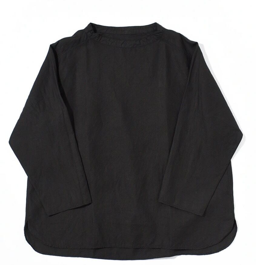 オーバーサイズのプルオーバーで、身体と生地の空間を多くとることで着ていないかのような解放感があります。スプリットラグランスリーブによって程よい運動量が確保されていて、洗濯を繰り返しても綺麗に立つ衿元がTシャツよりもきちんとした印象を与えています。