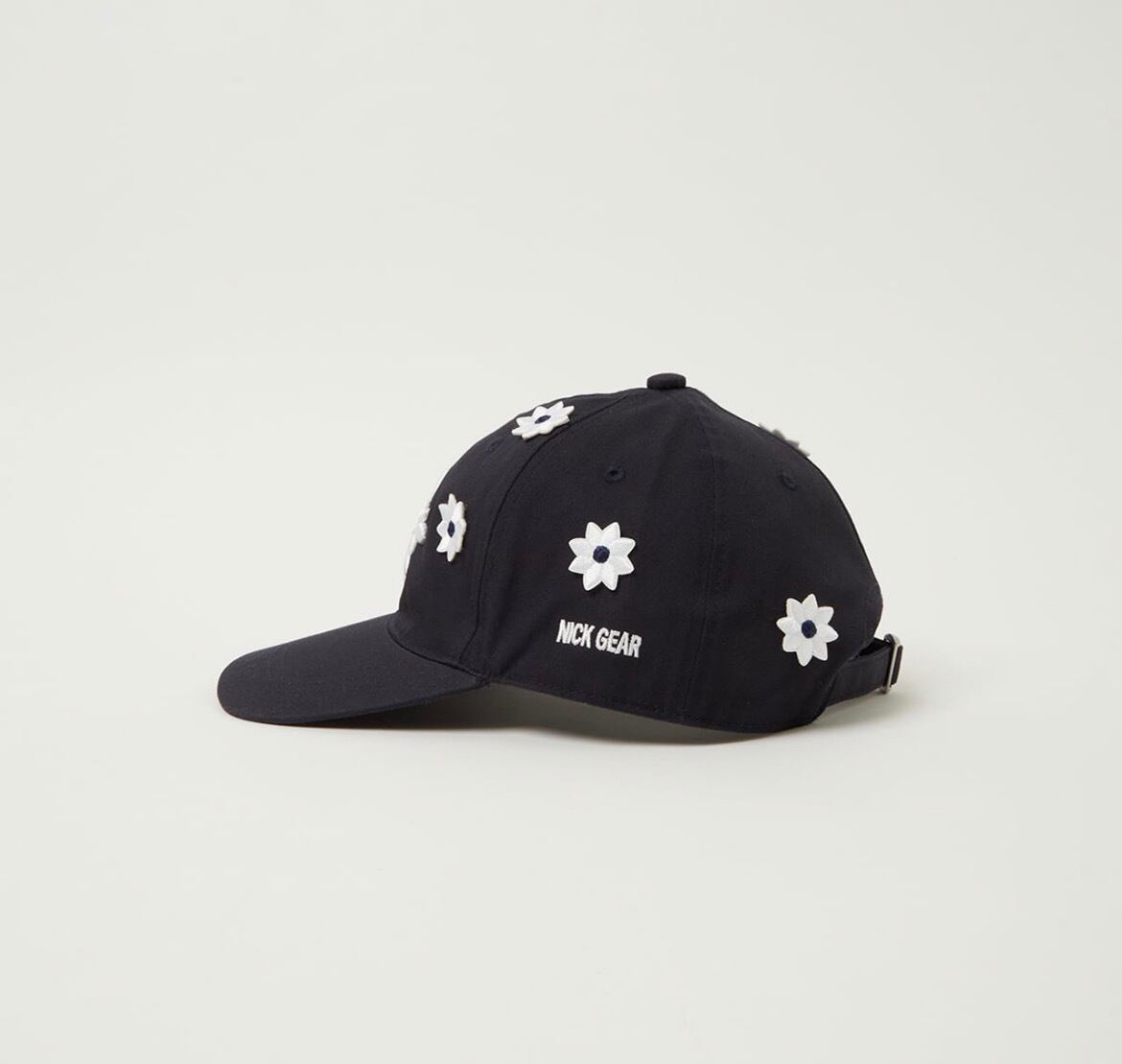 NICK GEAR定番のフラワー刺繍ワッペンを配置。