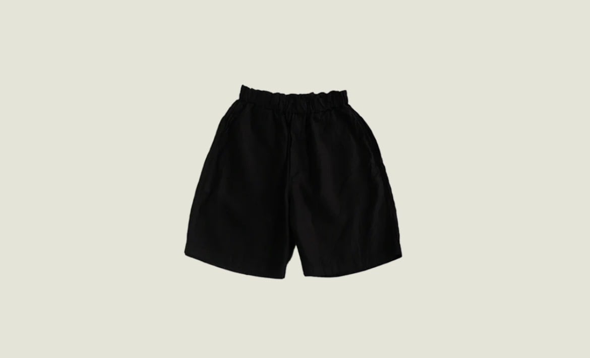 ベルトループが付いていますが、ウエストゴムと内側のオーガニックコットンの紐で、ベルトを用いなくても着用が可能です。裾を絞らず、広げることで軽やかな印象になっています。