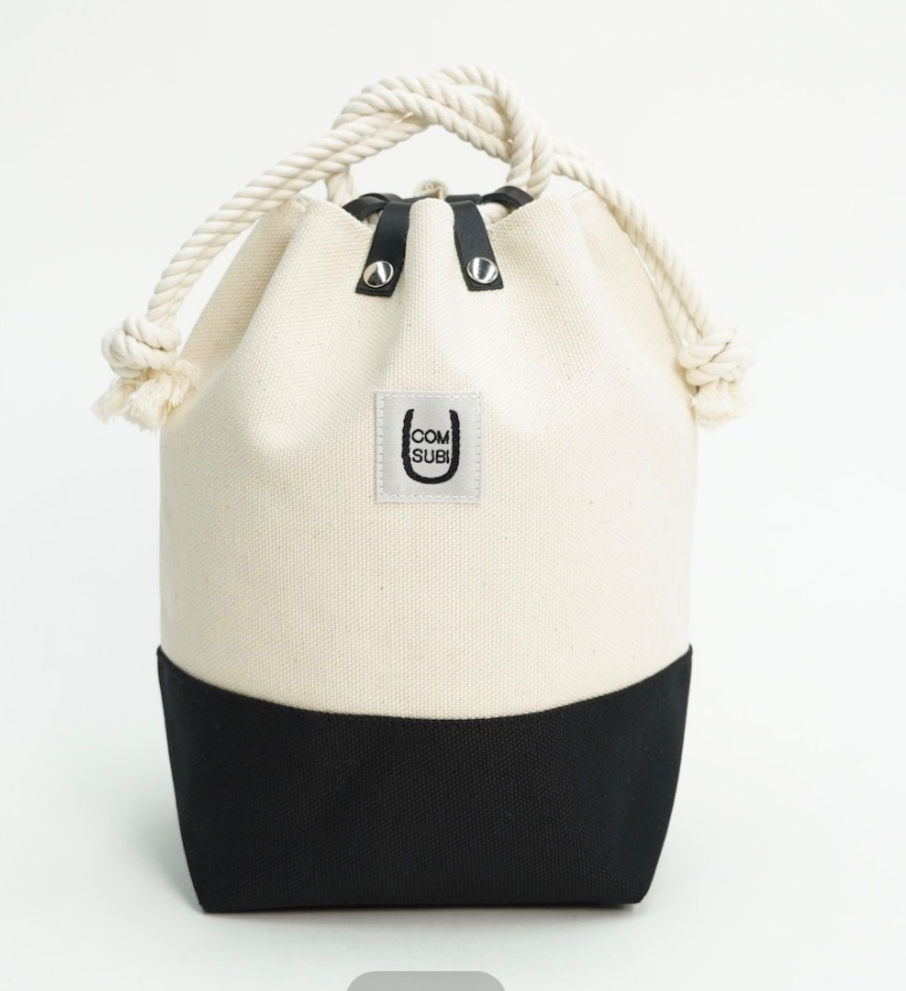 某アウトドアブランドをオマージュした切り替えでアウトドアなイメージに仕上げたコムスビバッグです。