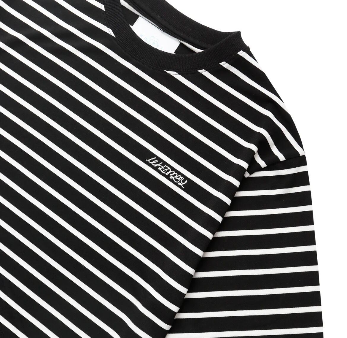 レーヨンを使用し、滑らかで上品な落ち感が魅力的なBORDER TEEは胸元に刺繍でシンプルに。全体的にシンプルでクセのないシルエットとなっている。