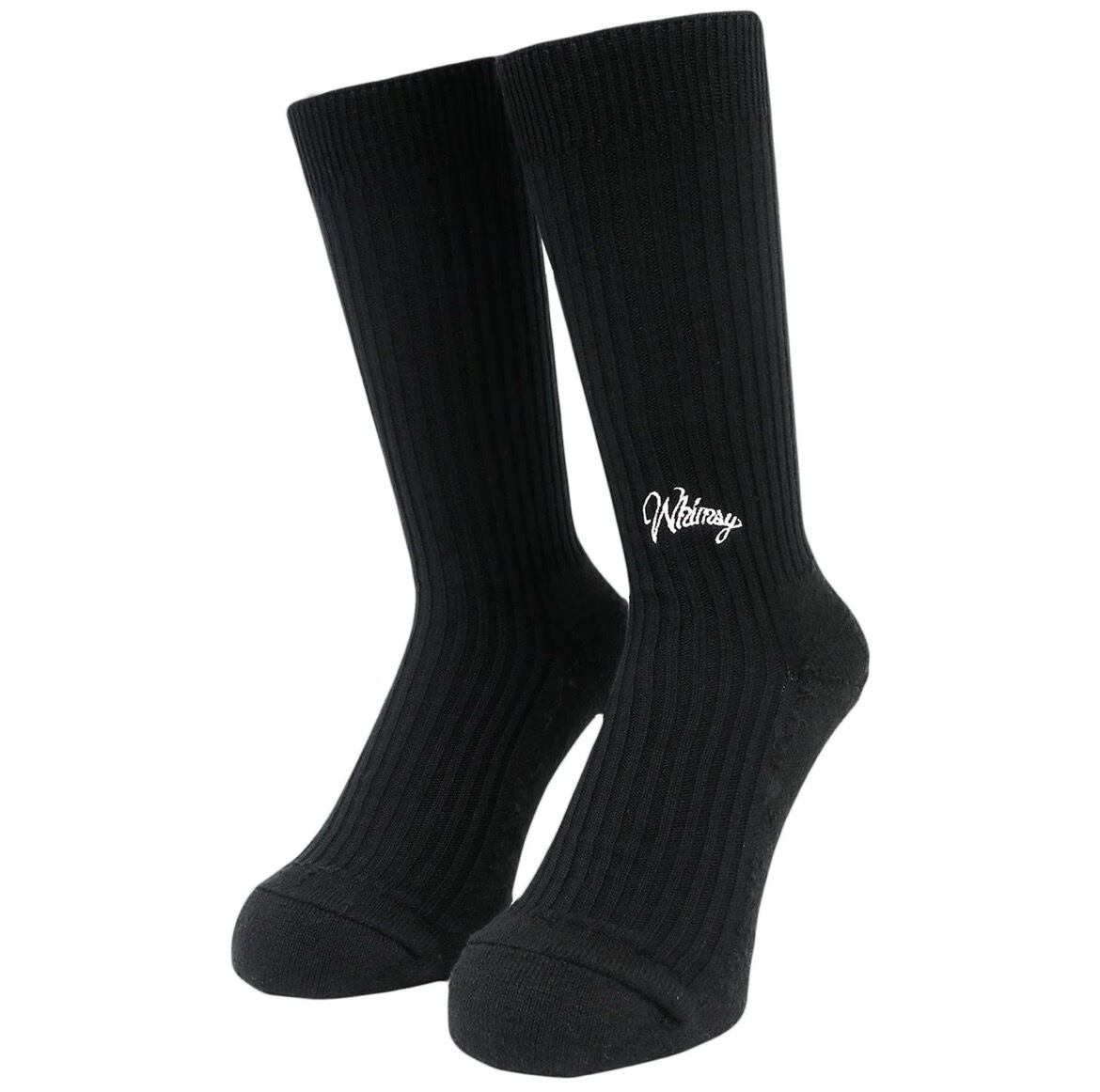 サラリーマンのおじさんや真面目に登校する学生なんかが履いてそうなシンプルなソックスをサンプリングしたソックス。シーズンによりボディカラーやロゴのカラーが変わるWHIMSY定番の1足。
