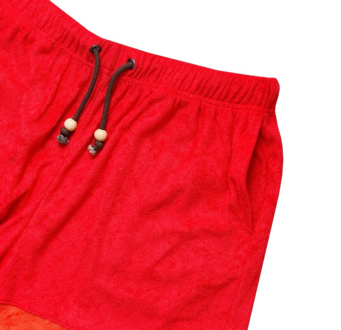 タオルのように柔らかいパイル生地で作成されたショーツは履き心地抜群。大胆な切り返しはシンプルながらしっかり主張が効いた配色。全体的にゆったりしたシルエットでストレスフリーの夏仕様。