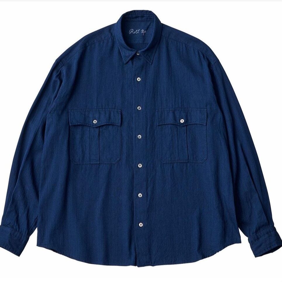 ROLL UP VINTAGE GAUZE SHIRT -INDIGO-