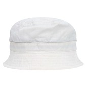天然素材ヘンプを使用したバケットハットを製品染めしている。独特のシワ感が特徴。狭めで横では無くやや下向きに設定されたツバ、深めの作りとなっているクラウンは顔の大きさや、形を問わずフィットしてくれる。